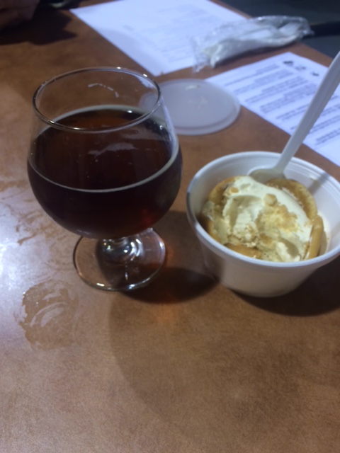 Onto the Belgian Dubbel. We weren’t sure what cheese to try, but ending up pairing it with a goat brie. The cheese amplified everything that’s great about a Belgian Dubbel. The beer went to a whole new level of awesome, and was by far, our favorite pairing of the evening. We didn’t stop there though. A food truck was at Adventure and they were serving banana pudding. We bought some. Igor was the guinea pig and tried the Dubbel with the pudding. He went crazy! Of course I had to try it and what a pleasant surprise! Who knew plain old fashioned banana pudding would be so good with a Belgian Dubbel?